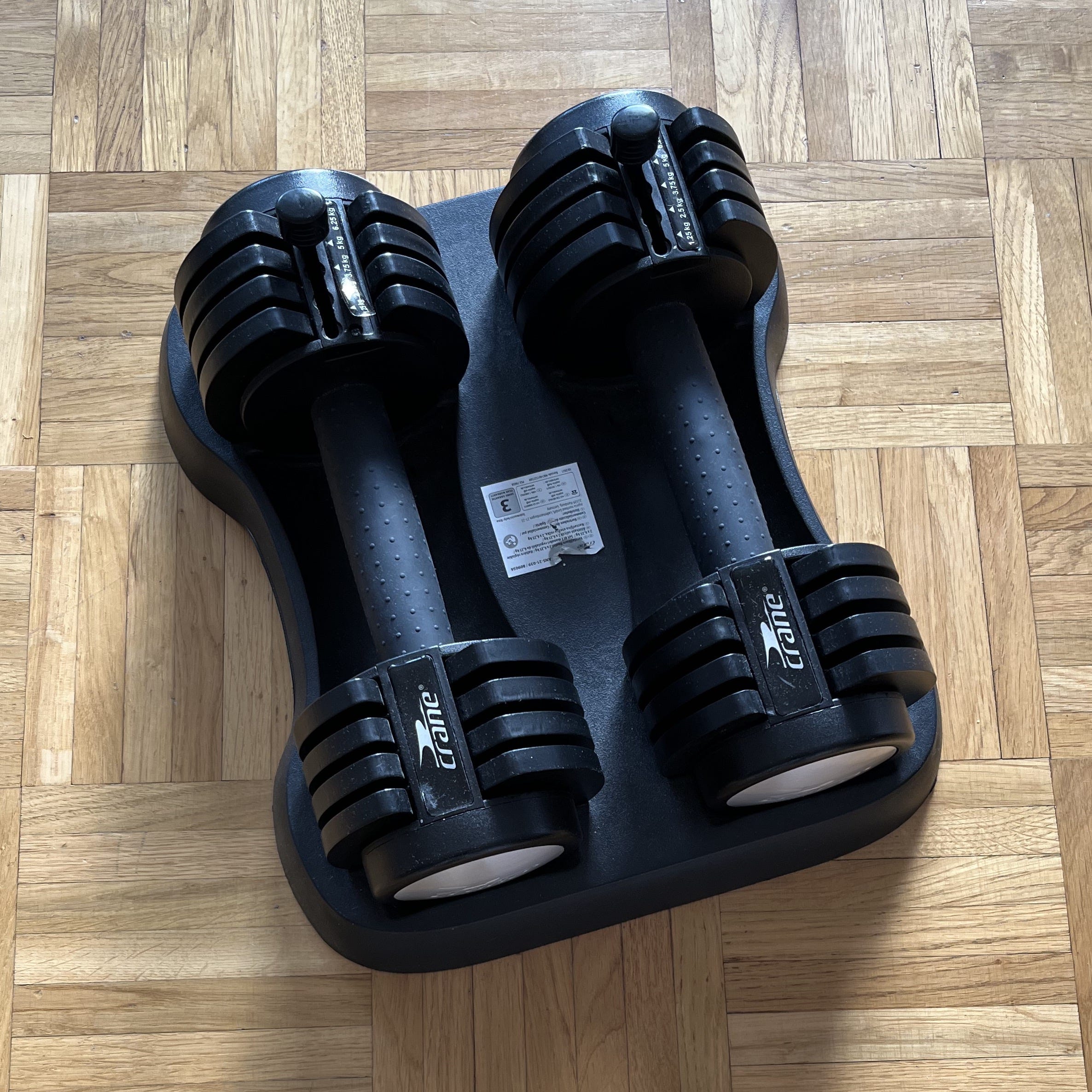 In practice, the heavier set handles lower body and back work: squats, deadlifts, rows. These are the large muscle groups, and they need more load to generate a real training signal. For upper body, I stay around 6 to 7 kg (13 to 15 lb) for now. That is the range where I still have to genuinely work through the last few reps, which is the whole point.