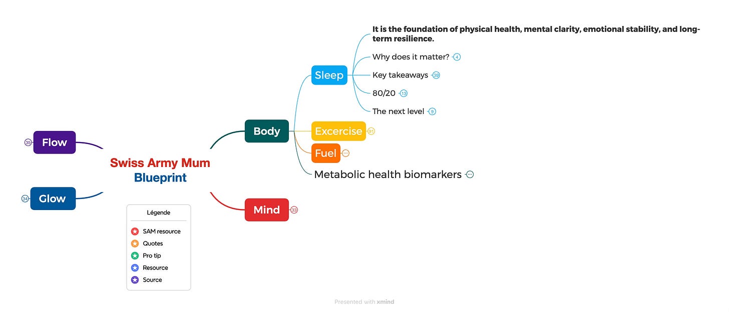 Last week, I introduced the Swiss Army Mum system—four pillars (Body, Mind, Glow, Flow) built on the 80/20 principle. Not every tool, just the essential ones that actually work.